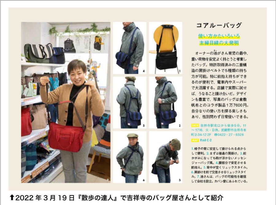 その甲斐あって、コアルーバッグはリピーターの方が実に多く、吉祥寺の店舗にお越しのお客様の半分以上を占めます。リピートの理由は共通して「使いやすい!」から。