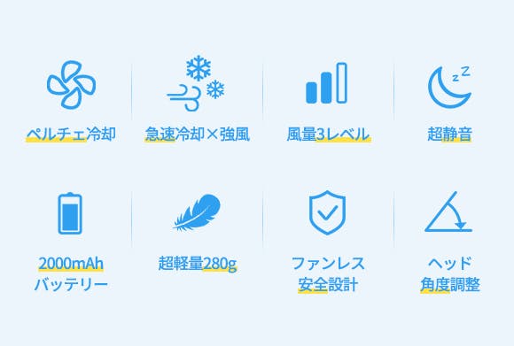F13は、ペルチェ素子による急速冷却、強力な風、そして冷却パッドで首回りをしっかりと冷やし、体全体もクールダウンするお手伝いをします。今年の夏はこの1台で暑さを撃退しましょう!