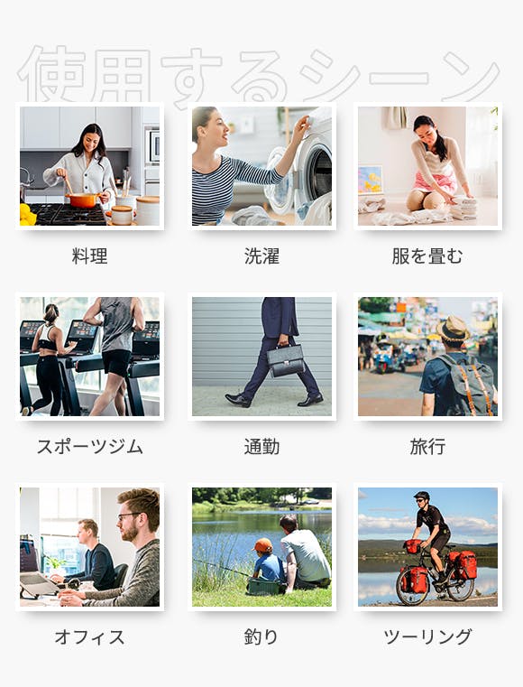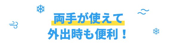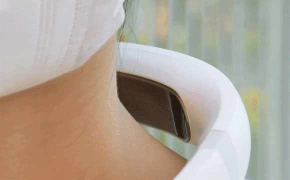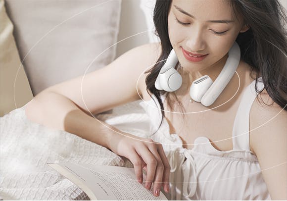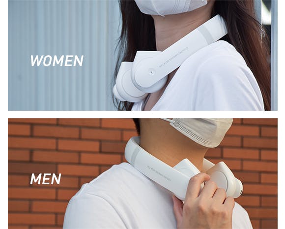 F13は首に掛けるタイプですので、いつでも両手が使えます。ヘッドホンのように身に着けるだけなので、屋外でスマホを見たい時や日傘を差したい時、または屋内で家事をしている時にもお使いいただけます。