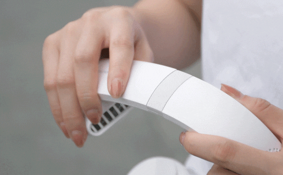 ゆるやかにカーブしたU型デザインで、首に負担をかけません。シリコーン製のアームを曲げて、最適な位置から風を送ることができます。