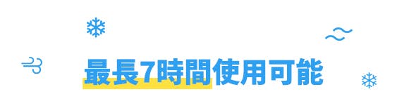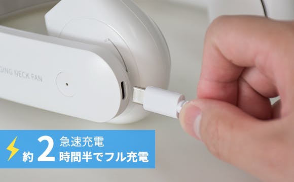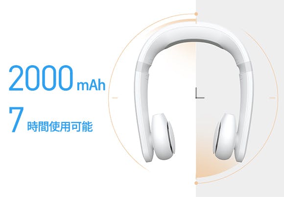 2000mAhバッテリーを内蔵しており、風量レベル1でご使用いただいた場合、最長7時間使用できます。