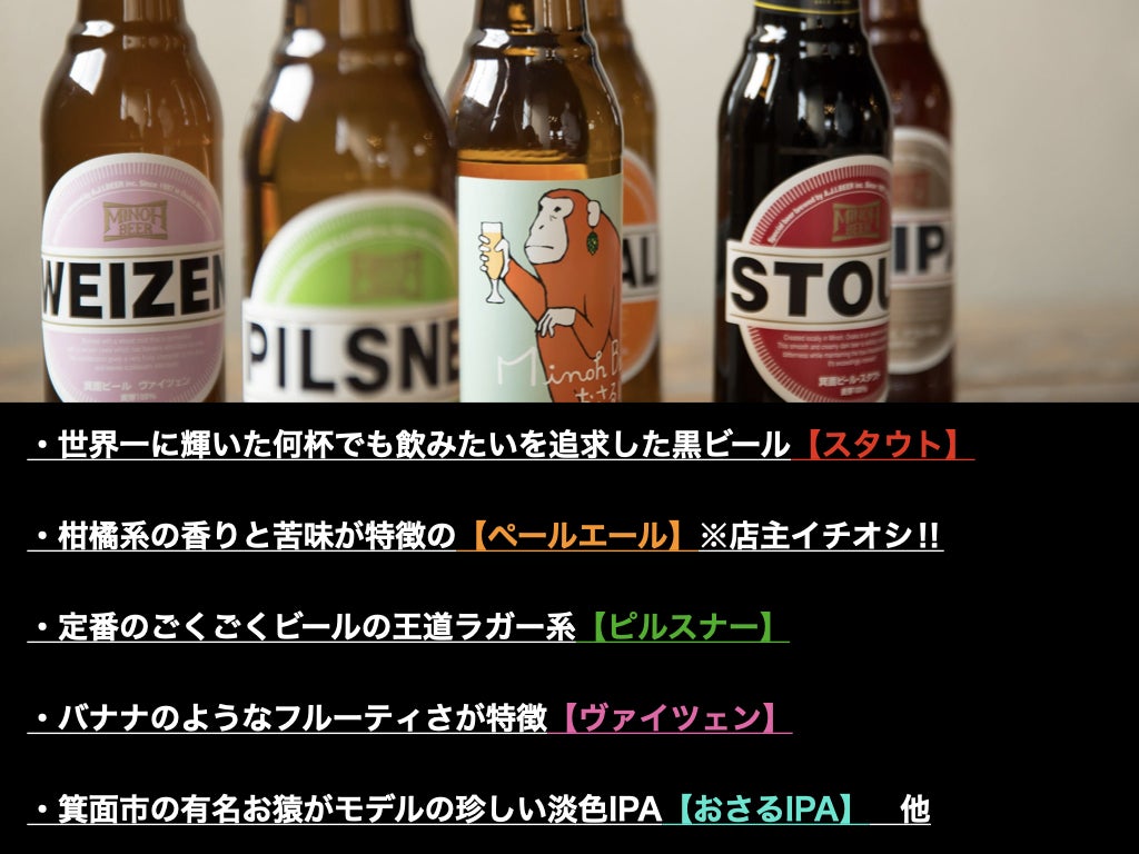 現在「食のカオス」と呼ばれる街、大阪 天満にある箕面ビール直営店で働かせてもらっていた経緯もあり、特別に箕面ビールを仕入れることができました!