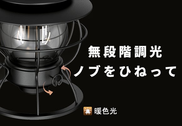 無段階調光で、まるでランプの灯を調整するように、ねじを回すと光が変わります。