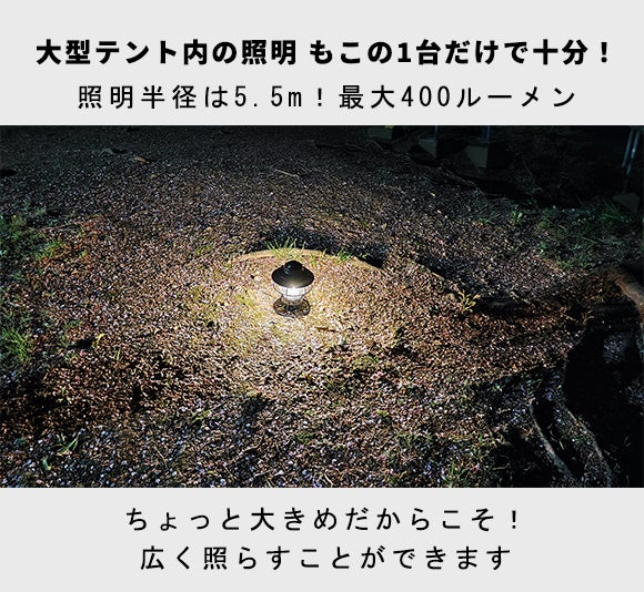 4人用のテントでも1台で隅々まで照らすことができます!