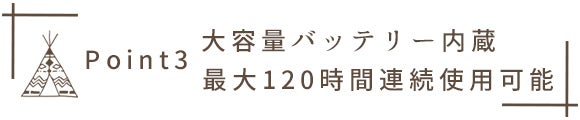 3.大容量バッテリー(10,000mAh)内蔵で、最大120時間連続使用可能!