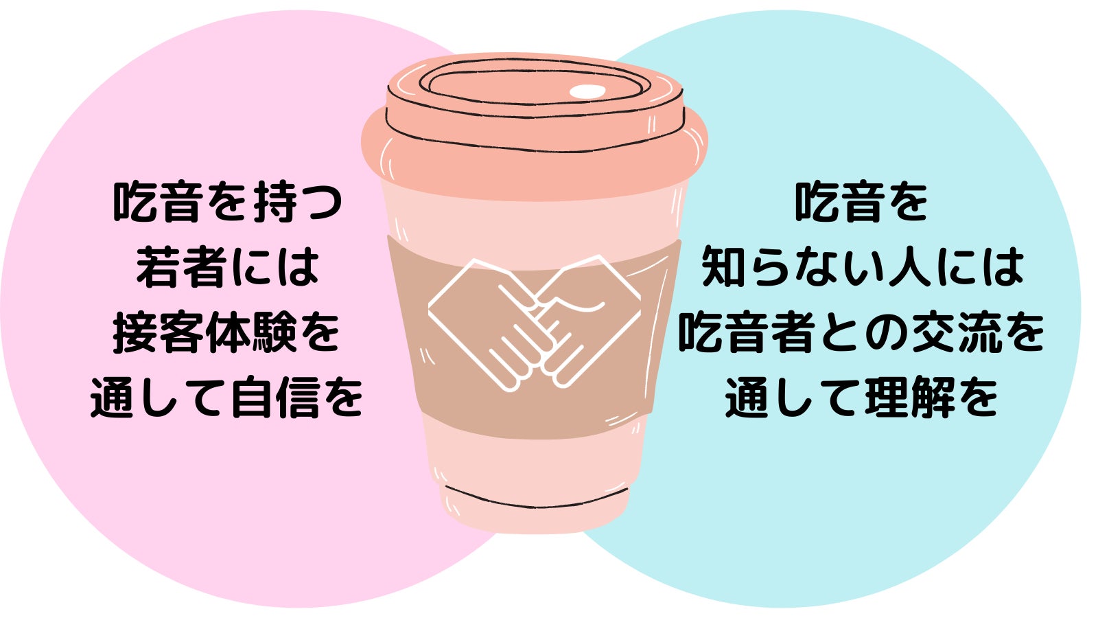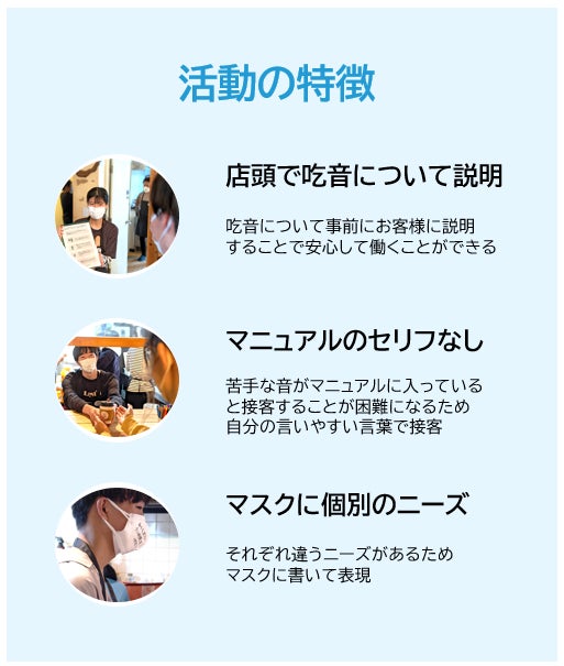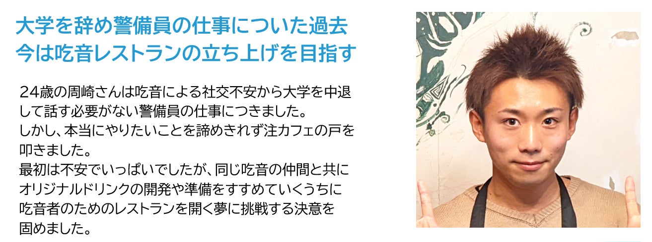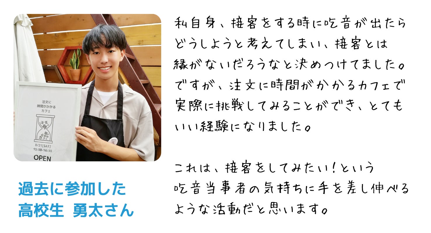 「吃音をもつ若者には接客体験を通して自信を」「吃音を知らない人には吃音者との交流を通して理解を」をコンセプトに2021年8月にスタートしたプロジェクト。