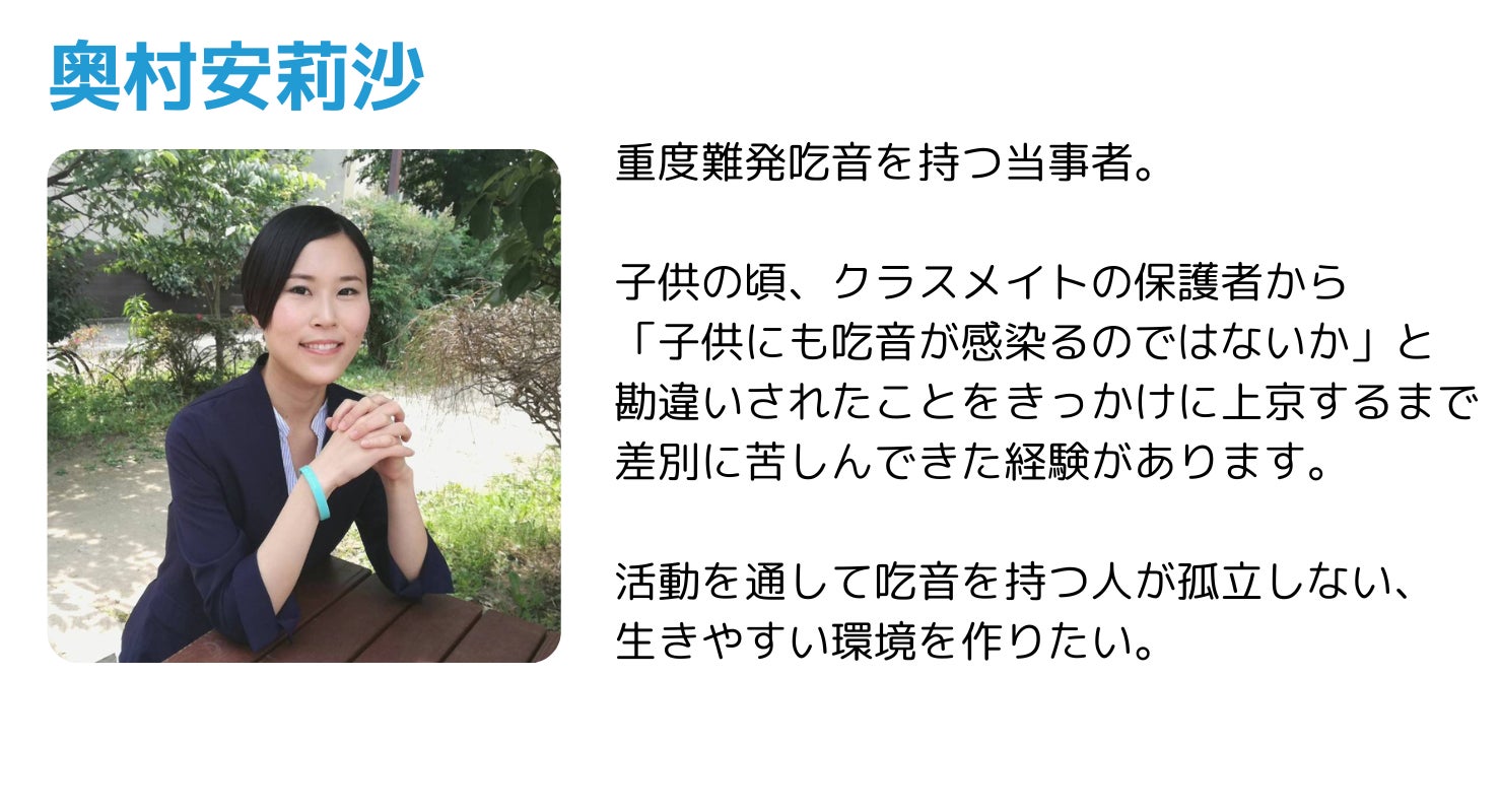 人と違う話し方のせいで、幼いころからいじめや偏見の目にさらされてきた方たちがいます。