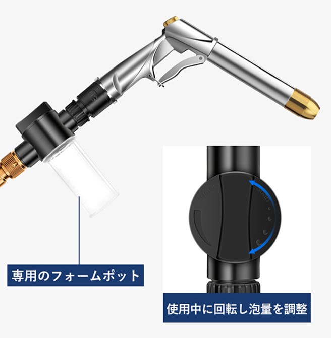 加圧下では、ノズルの水出力が増加し、水洗圧力も増加し、汚れや垢をすばやく除去できるので、効率的な洗車を実現します!
