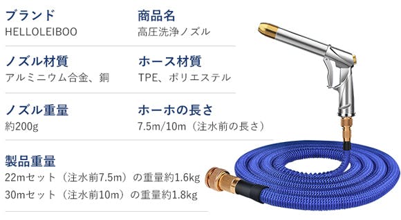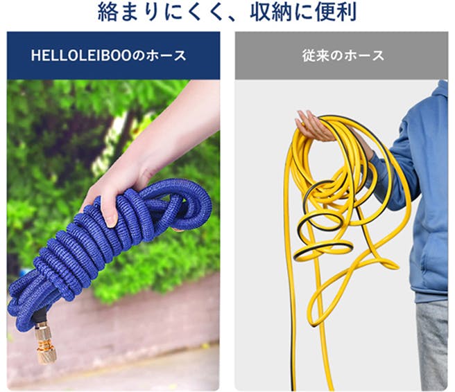 「HELLOLEIBOO」のホースは水が流れると元の長さの3倍まで伸ばすことができます。10mのホースが30mに変化します。
