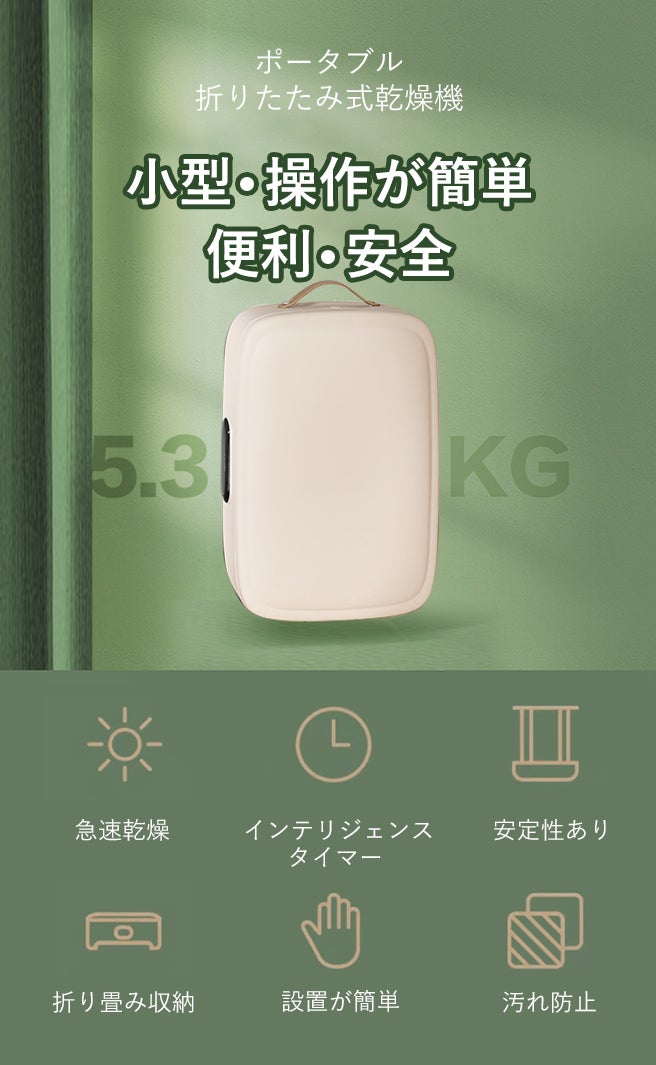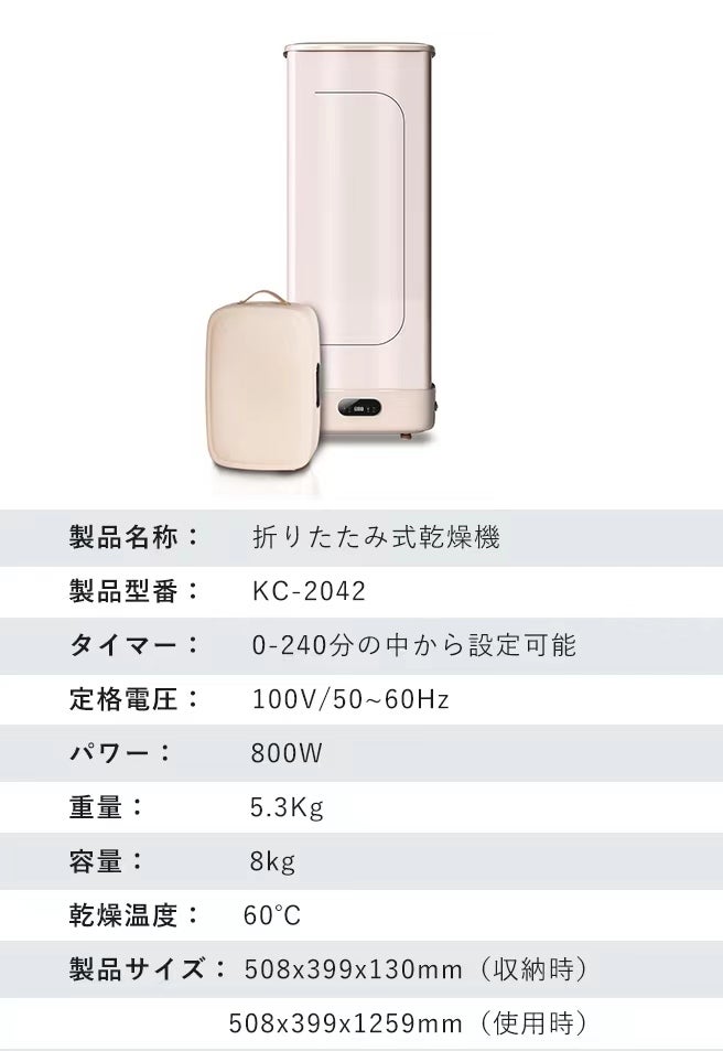 乾燥+除菌+脱臭3機能をまとめて搭載!「KC-2042 」さえあれば、衣類の乾燥、除菌、脱臭すべてが完了します!旅行時や普段の生活を便利にしてくれます。