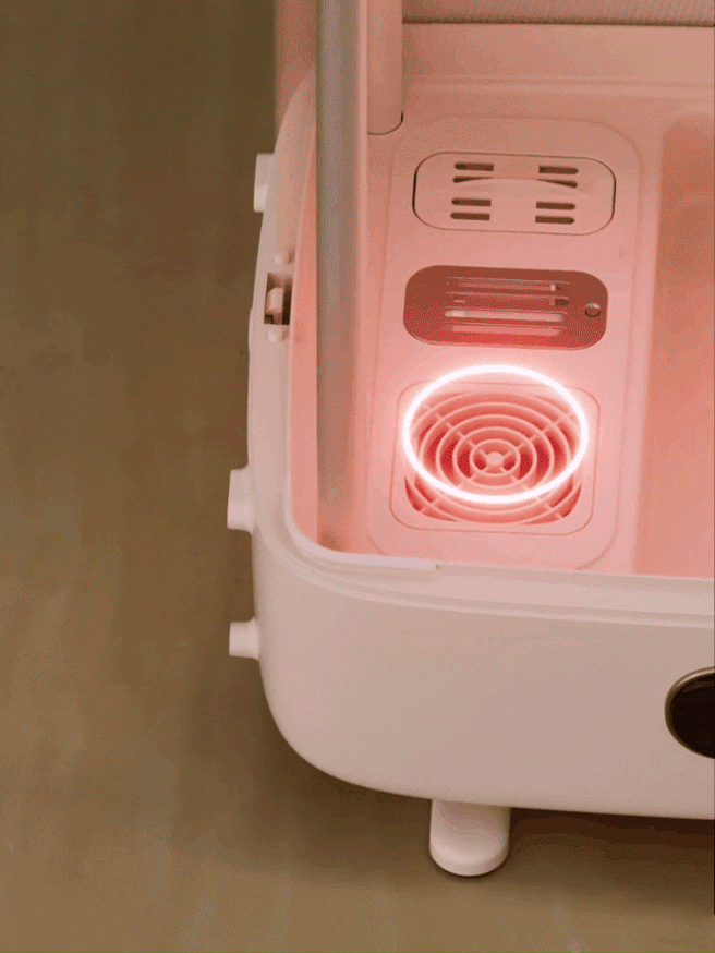 「KC-2042 」 はUVライトを搭載!微生物細胞にUVライトをあてることによって、細菌やダニの繁殖能力を破壊し、除菌することができます。衣類を乾燥させると同時にダニ除去も行えるので、衣類を清潔かつ衛生的に保つことができます。