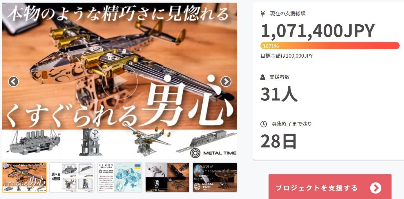 プロジェクト開始から3週間ほど経過し、ついに支援総額が100万円を超えました。
