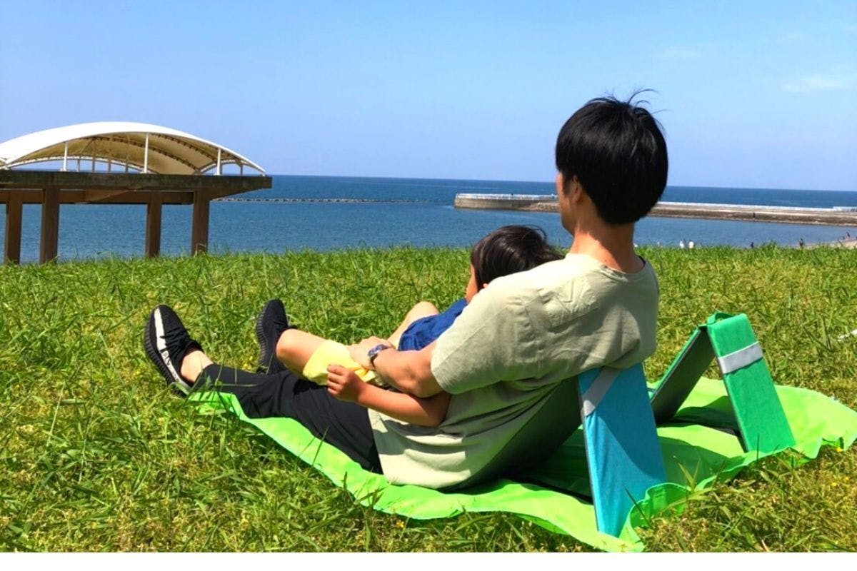 いつでも持ち運びができて、子供でも簡単に折りたたんで広げることができ、快適に座っていられる『ポータブルピクニックチェア・ヒューシート』です。