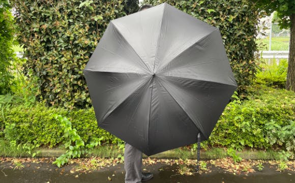 日傘にすれば涼しく、外が35度を超える猛暑日でも傘の中は28度!「Carbon Brella」はしっかりとUVカット機能を発揮します。撥水性が高いので、入り口でサッと水切りでき、訪問先の床や玄関を濡らさずスマートに収納しやすいデザインです。