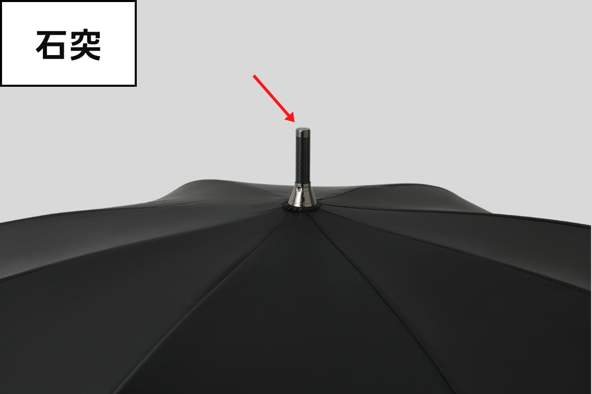 合金製の石突(いしづき、傘の先端部分)は耐衝撃性を備えています。