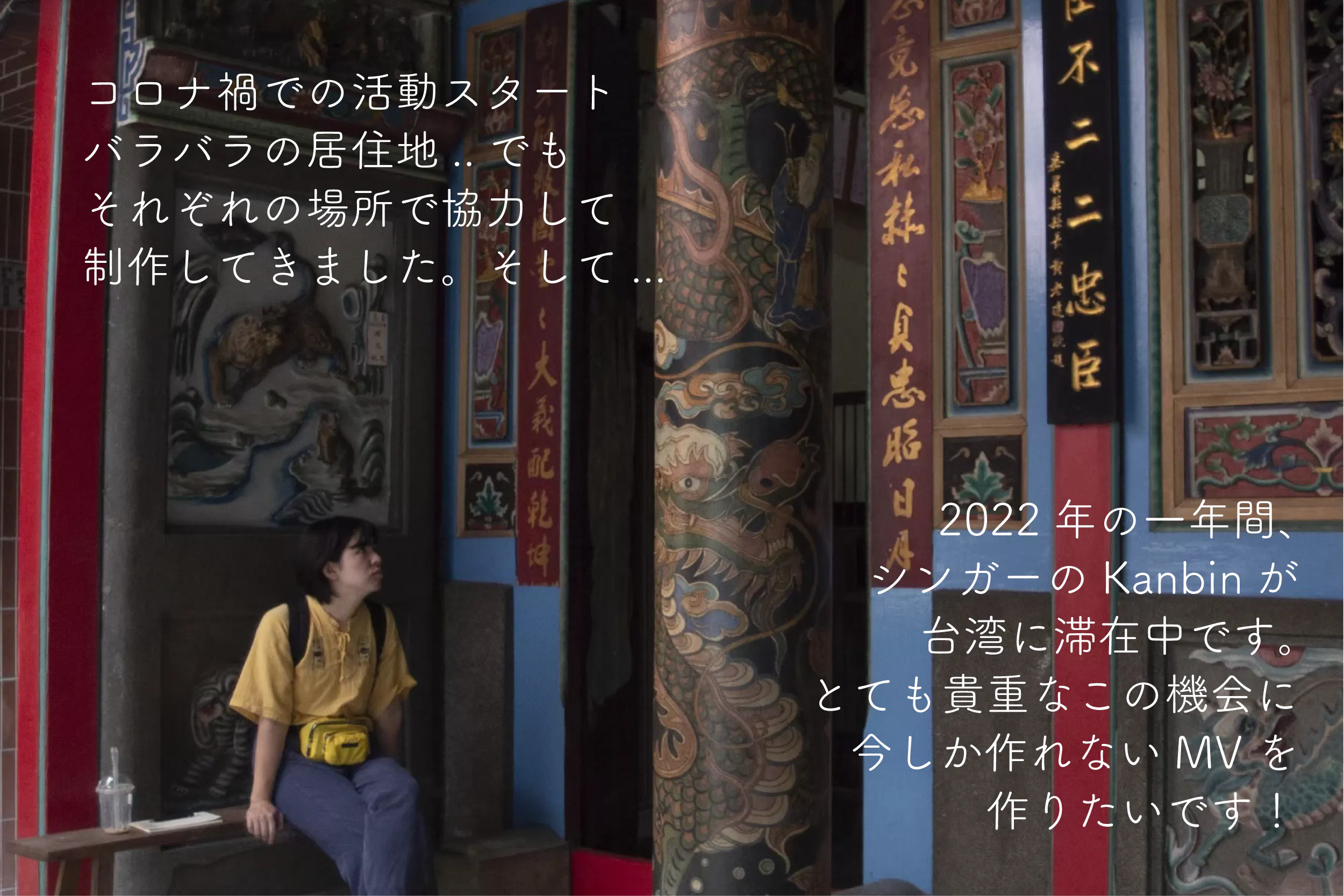 今回のKanbinの台湾滞在はもう今後二度とないかもしれない特別なこと。リモートでも継続していい音楽を作ってきた私たちならでは作品が完成すると確信しています。