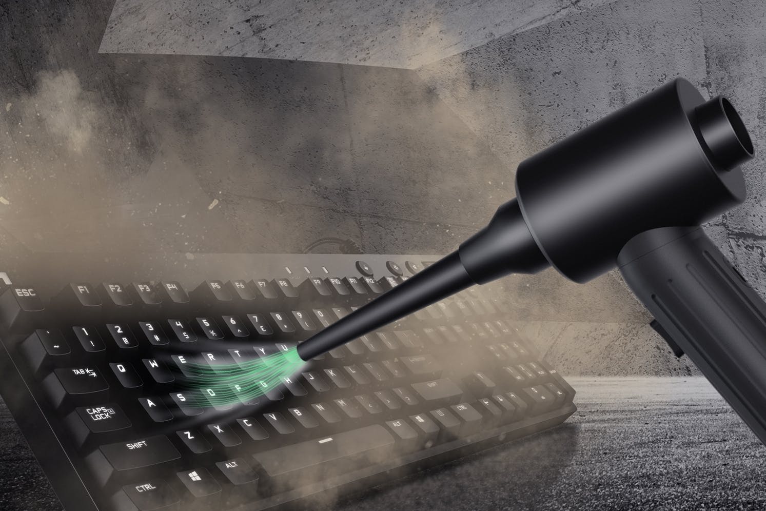キーボードの隅に入り込んだほこりや小さなゴミもブロワーで飛ばします!