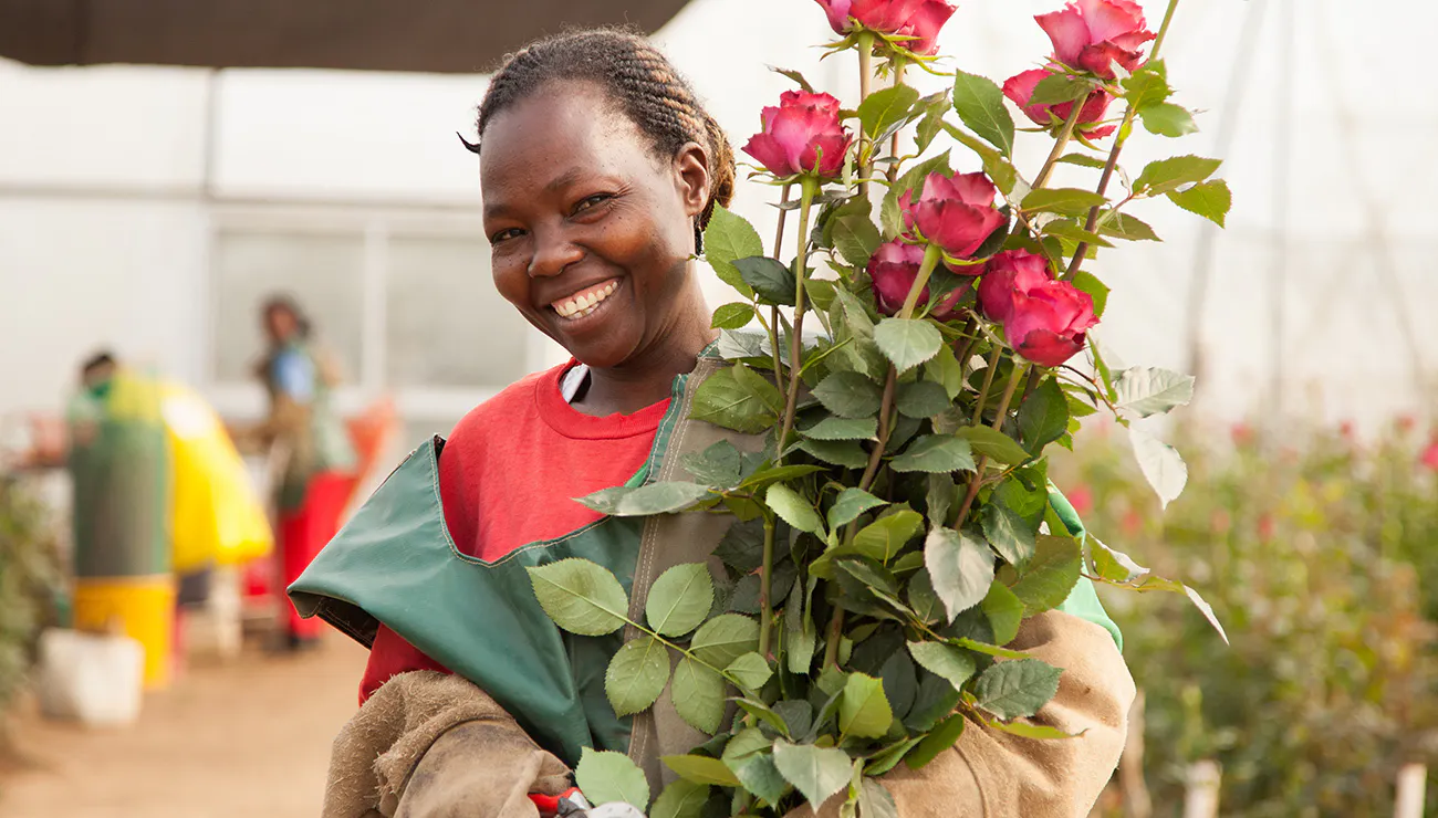 与えるだけの援助に疑問を持ち、ビジネスという対等な関係で雇用をつくる方法はないのか?と考えていたところ、素晴らしい生命力のバラに出会い心を奪われました。ケニアは赤道直下で日照時間が長く、標高が高いため朝晩と昼間の寒暖差が激しい環境なのでバラの栽培には最適な環境なのです。