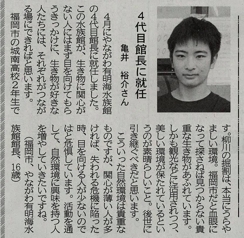 「やながわ有明海水族館」という名前をつけた張本人の一人です。自分で自分を応援していますとは、これいかにですね(笑い)。名前よりもずっと大事なことは、この水族館の前身「おきのはた水族館」を私財を投げうって立ち上げられた地元の篤志家の、‟宝の海”有明海をなんとしても蘇らせたいとの熱い思いです。それは、多くの子どもたちに有明海の珍しい生き物を見てもらい守ってほしいとの思いです。その世代を超えた思いが、子どもたちが集い高校生が館長を務める、全国でただ一つのこの上なく貴重な水族館へとつながりました。