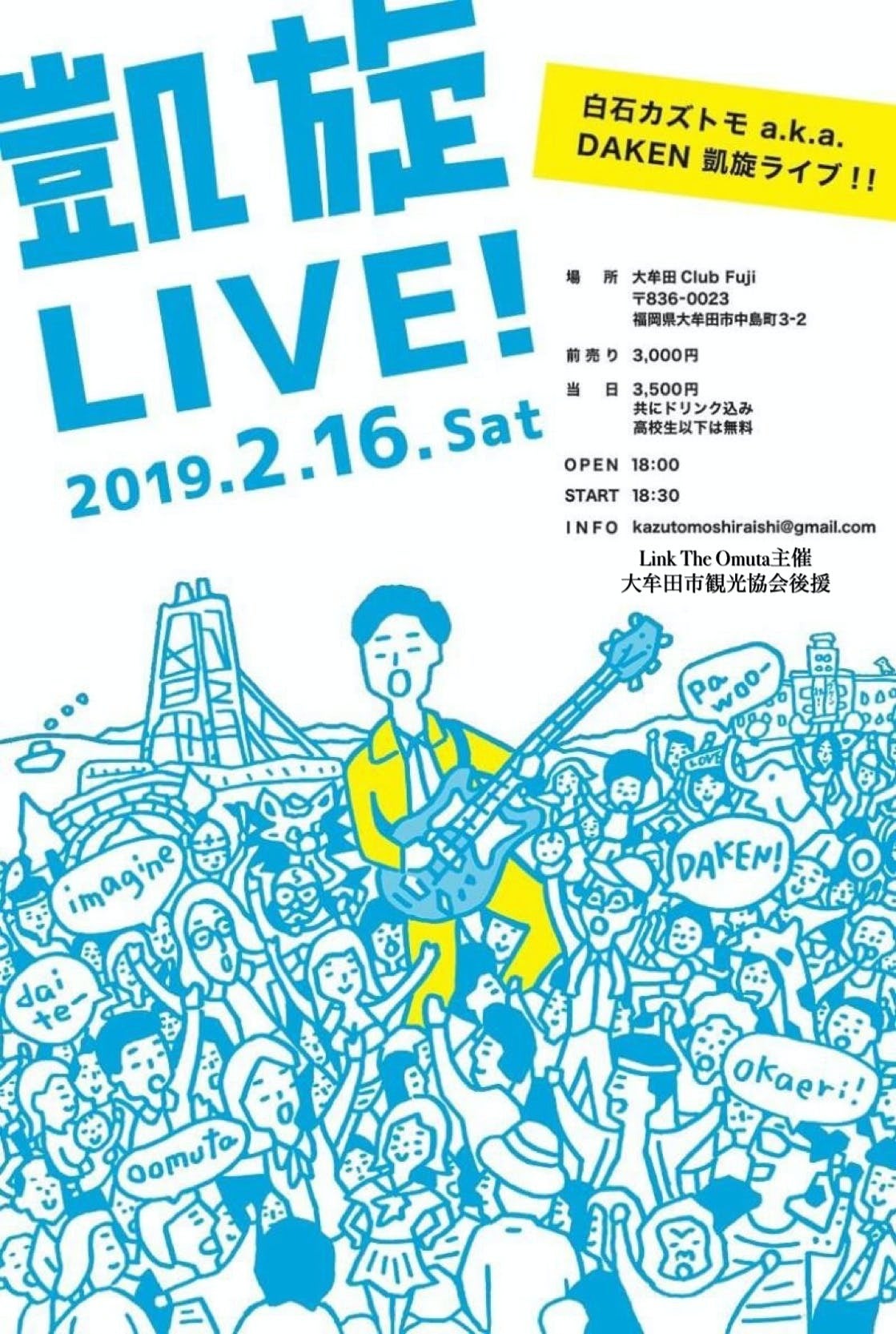 それは遡る事3年半前、私がフリーでイベント等をやっていた時に、大牟田で凱旋ライブをやるので手伝って貰えませんか?とのオファーが白石君からあり、【Link The Omuta】というグループを立ち上げて、準備段階からライブ当日までのサポートをしました。その時に知り合ったのが、今回絵図鑑のイラストをお願いしている『田渕周平』さんです。