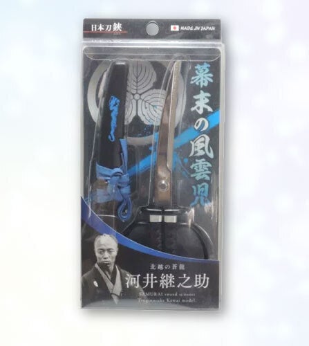 こちらのハサミは北越の蒼龍と言われた継之助をイメージし、鞘のに青い蒼龍が描かれております。