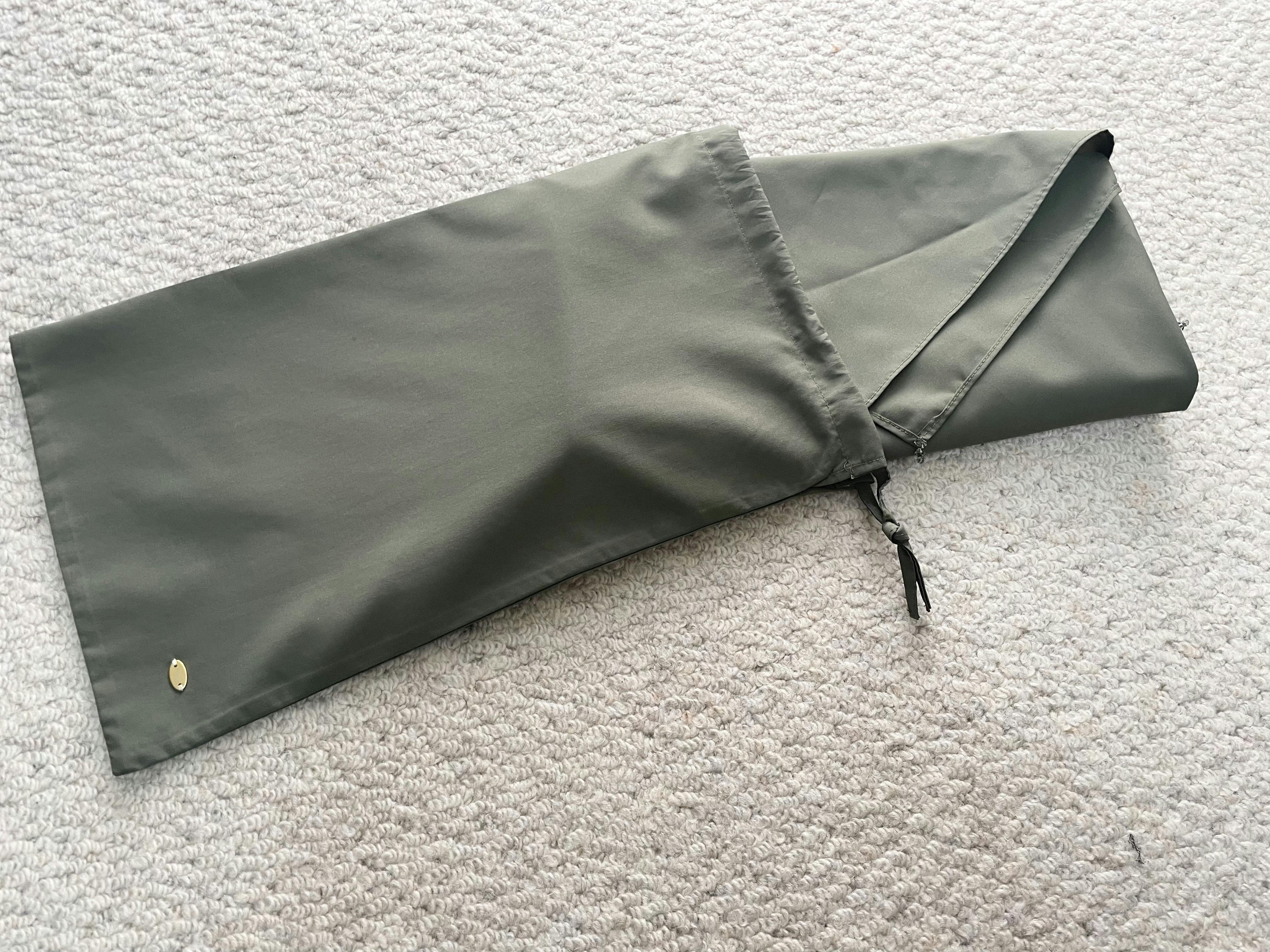 着用しないときは、折りたたんで付属の巾着袋に収納することができ、持ち歩きにも便利です。