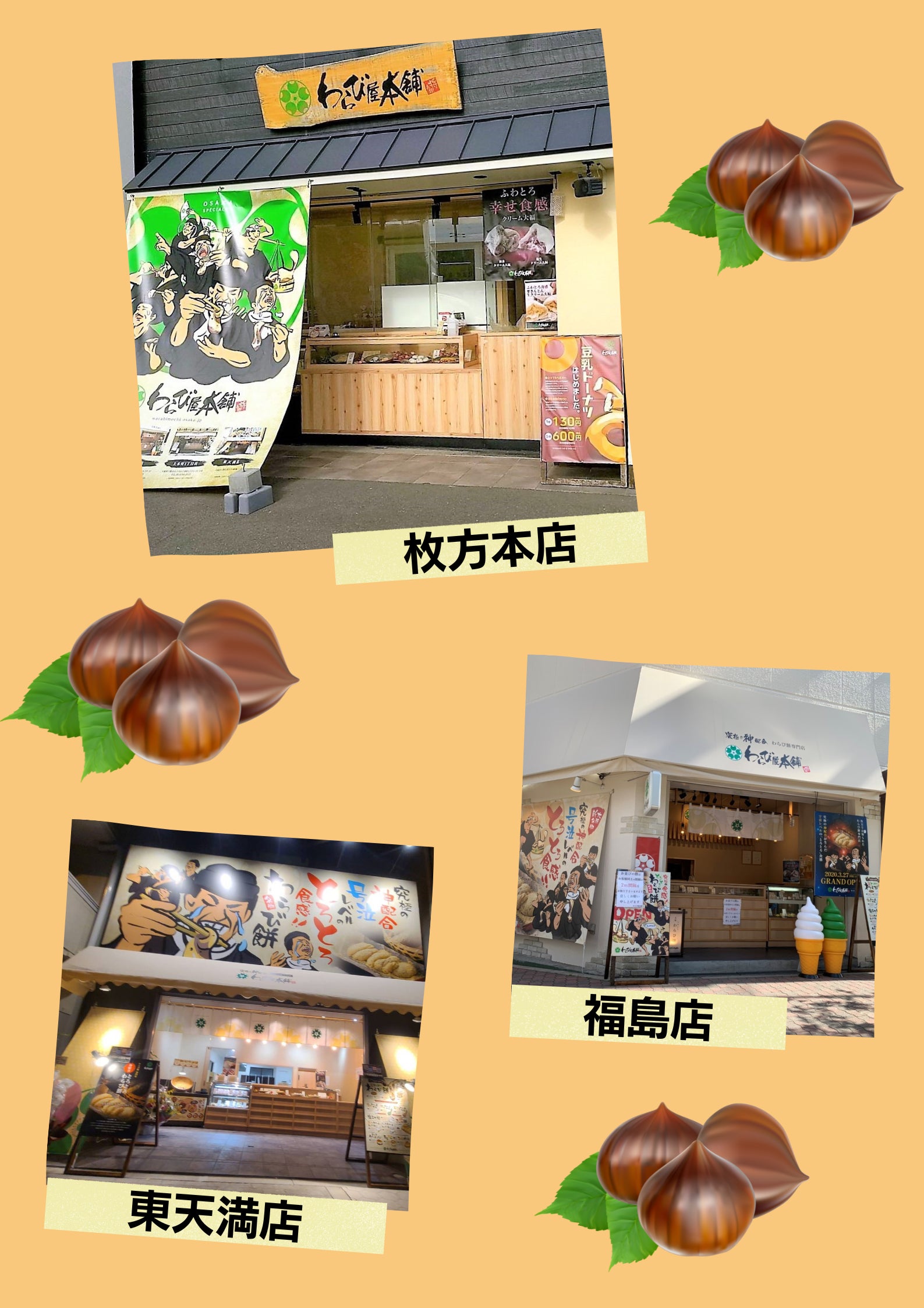 お近くの【わらび屋本舗】でぜひ「わらび餅」と「やきぐり」をお買い求めください♪