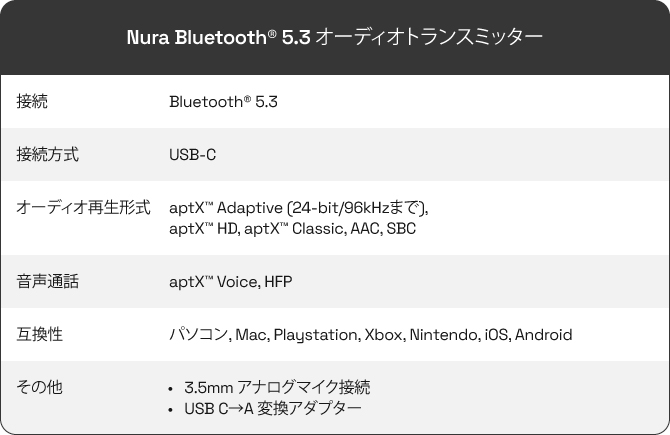 Nura Bluetooth® 5.3オーディオトランスミッター