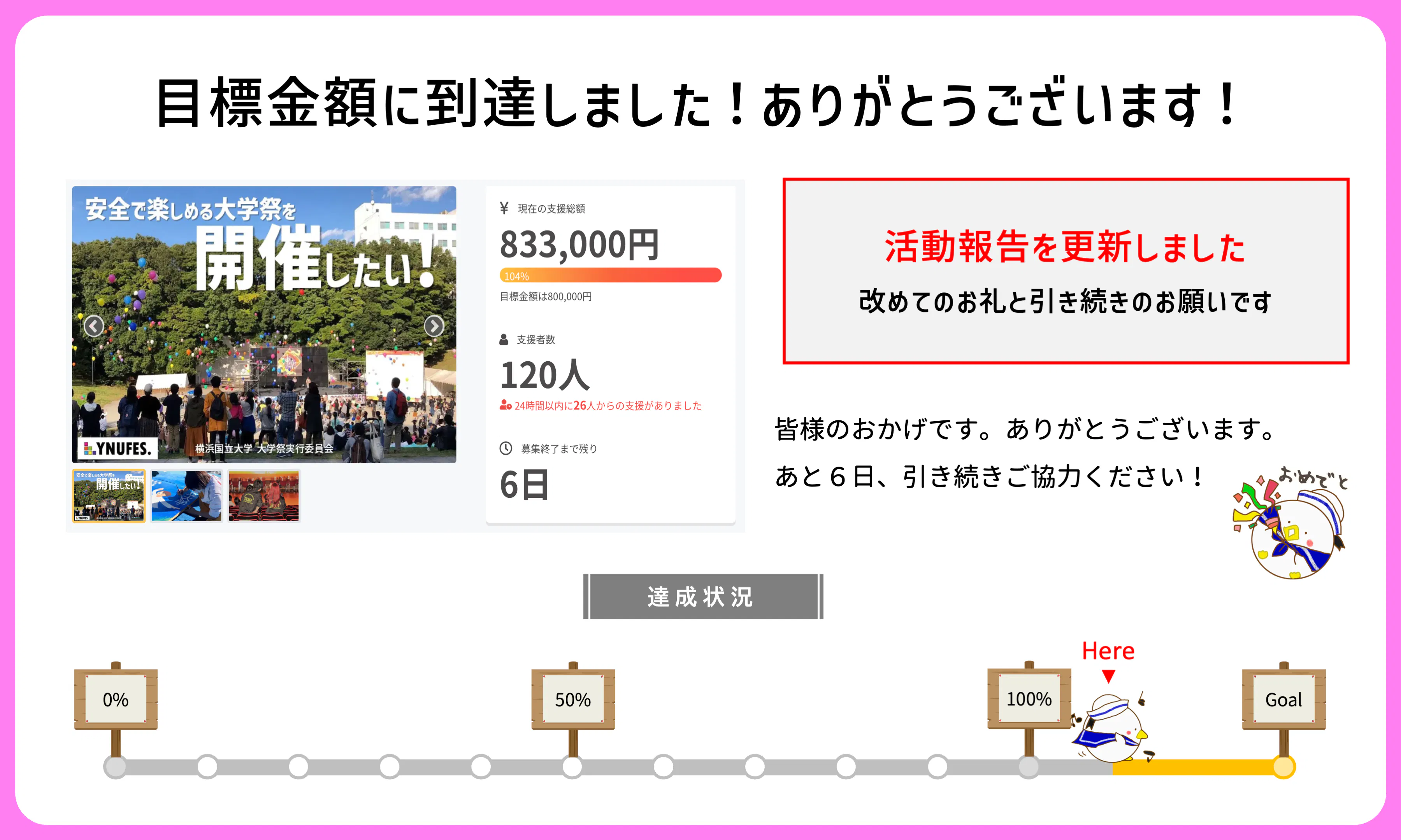 ただ、募集期間は残り6日を残しています。執行部としては、22常盤祭のさらなるグレードアップのため、最後まで完走したいと思っているところです。もう少しだけ、皆様の力をください!