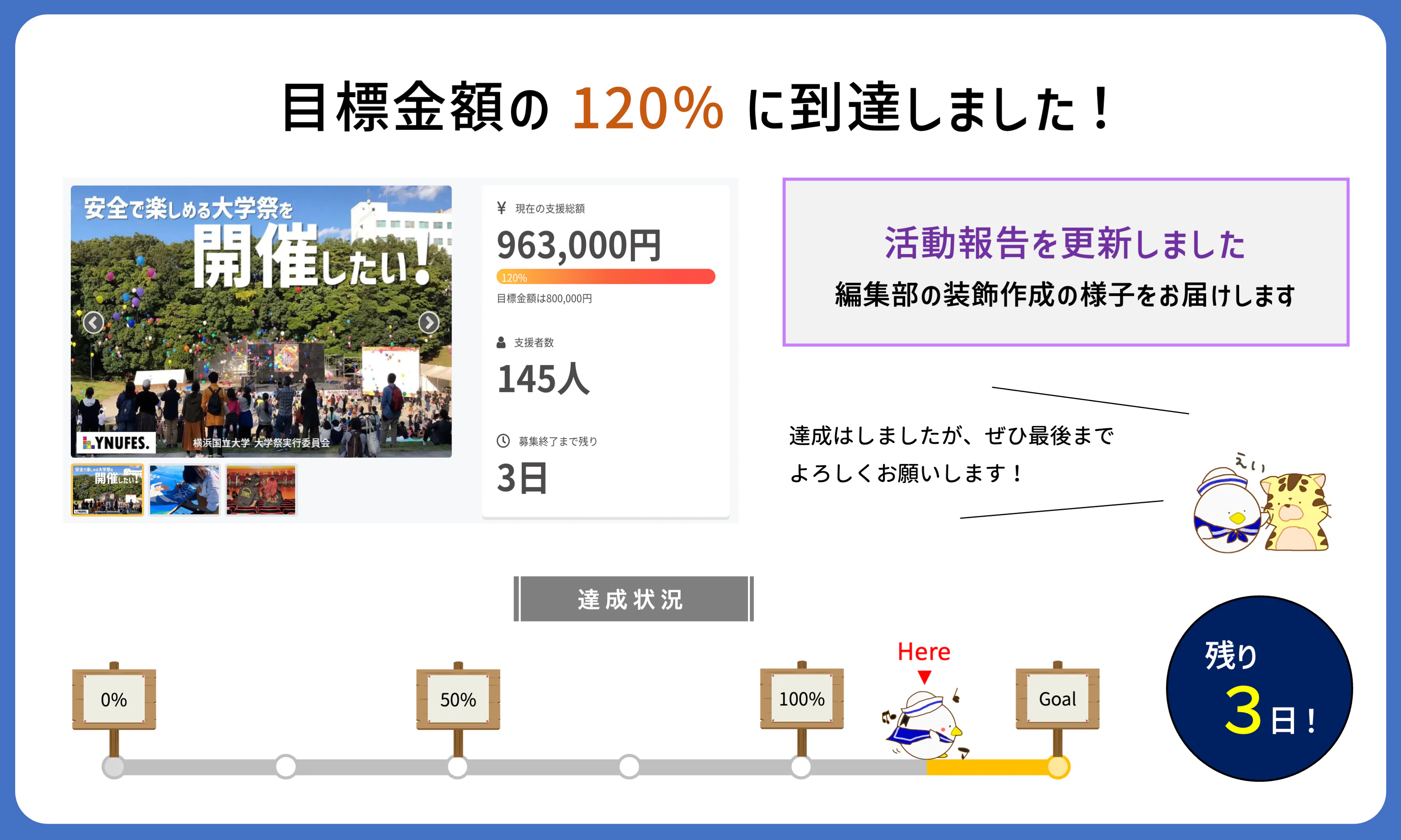 目標金額の120%を達成しました!!繰り返しにはなりますが、本当にありがとうございます…。頭が下がる思いです。
