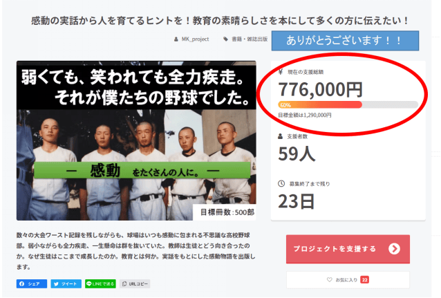 お陰様で、目標金額の60%を達成することができました。