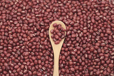 小豆の赤い色は、抗酸化作用を持つポリフェノールの1種であるアントシアニンの色で、赤ワインの2倍ものポリフェノールを含んでいるといわれています。北海道産の小豆はとくに抗酸化力が高いといわれています。そのほか小豆には、皮膚細胞を活性化する作用を持つカリウム、天然の界面活性作用や優れた抗酸化作用を持つサポニンも含まれています。つまり、小豆から抽出したエキスをスキンケアに活用することは、合成の界面活性剤に頼ることなく潤いの浸透を高める**ことができ、肌のバリア機能に無理な負担をかけることなくハリやうるおいを与え、エイジングケア*も可能にします。