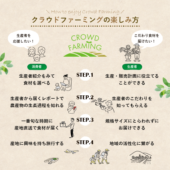 クラウドファーミングとは食材を生産過程において事前購入することで生産者を支援し、