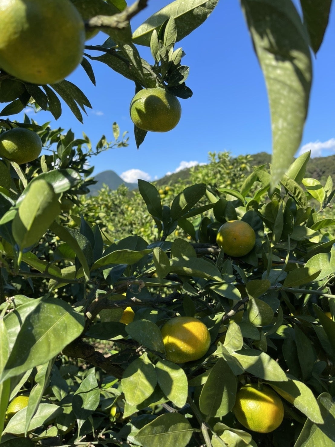前回の9月の写真と比べて、みかんの実がすこーし黄色っぽく色づいていますね!