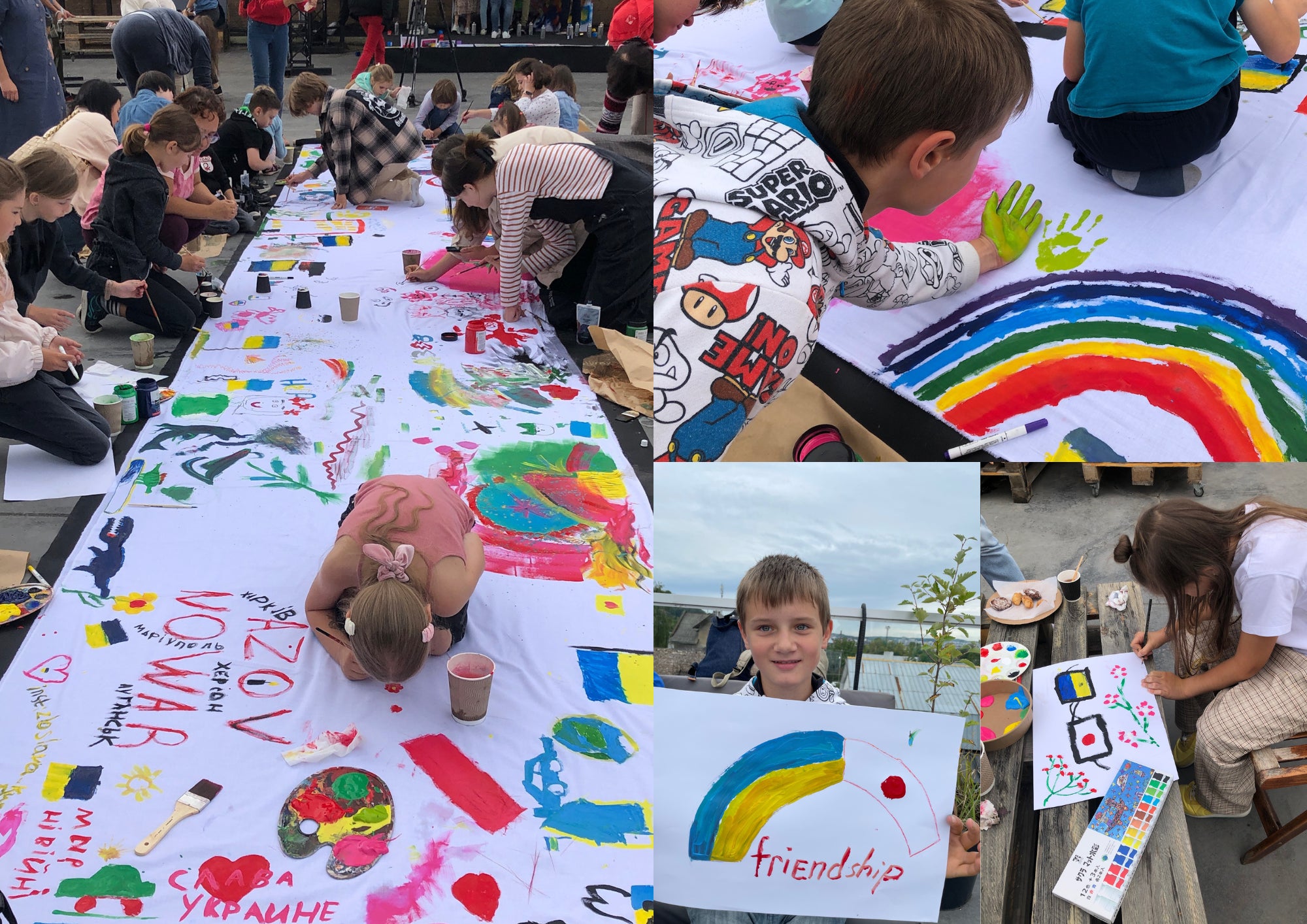 先月ウクライナを訪れワークショップを開いた際に現地の子ども達が描いた絵をお借りし、