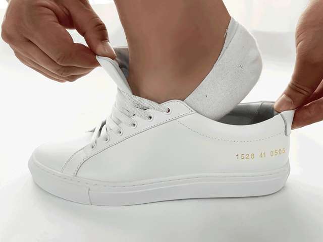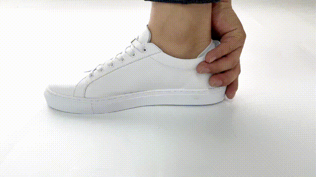 脱ぐ時はかかとを抑え、足を靴から抜くだけでスッと脱げます!