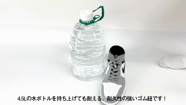 普通に見て見た目は通常の靴紐となんら変わりません。しかし、この靴紐は伸縮性の
