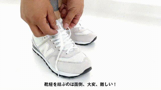 スニーカー、ひも靴の靴紐を結ぶという行為、動きに今まで疑問を持たず、当たり前と思い過ごしてきました。この靴紐を結ぶ事が面倒、時間が無い、苦手でついついかかとを踏んで履くことが少なくはないと思います。靴紐結び自体が苦手で、強引に靴の中に押し込んでいたりしませんか?