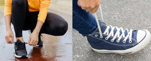 ◆ハイカットスニーカーはひも結びが面倒、履き脱ぎし難い。