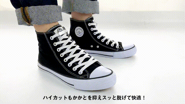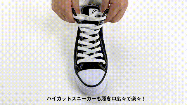靴紐を結ぶ必要がないので、小さなお子さんからご高齢の方、手が不自由な方、どんな方でもお使いいただけます!