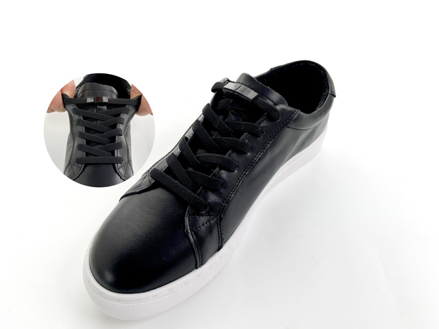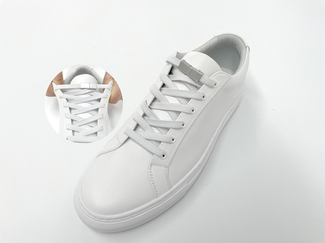 見た目、外観は通常の靴紐と同じように見えます。ところが、足を入れる時、靴の履き口の広がり、履いた時甲にフィットする感覚。このゴム紐でなければこのような超楽な履き脱ぎは出来ません。