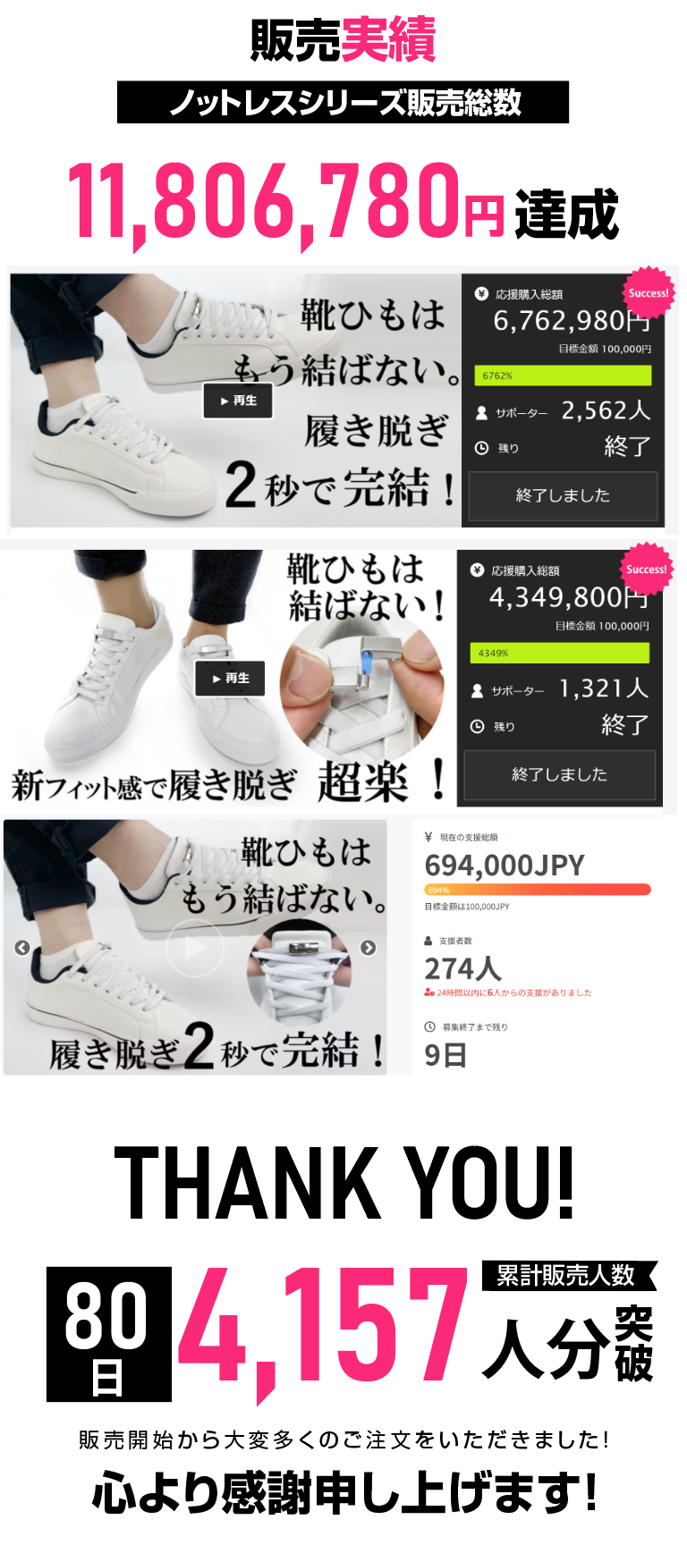 2018年より服飾雑貨、美容健康商品を自社製品開発・生産をしています。日常生活上である悩み、問題にフォーカスし便利、役立つ、サポートするをコンセプトにプロロジェクトを組んでます。前回2500名以上応援購入頂いたノットレスを更なる進化するべく企画をスタート。現状に満足せず、改良改善を入れて新たなバックルを完成。ゴム紐も進化させノットレス2の完成に至りました。カラーはノットレスと変えてマットカラーで統一。是非、実用性とファッション性を兼ね備えたノットレス2を体感してみて下さい!