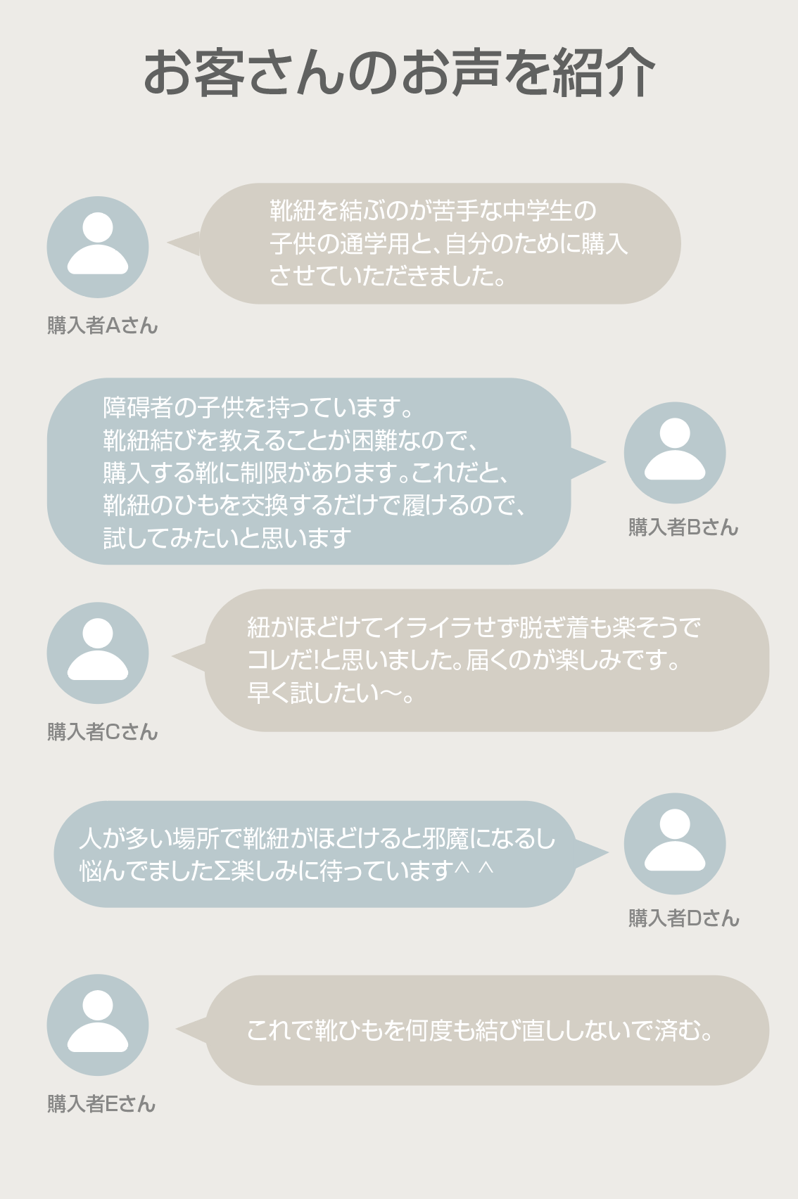 ◆手が不自由で靴紐を結ぶのに時間がかかる。また紐靴自体が選べない方。