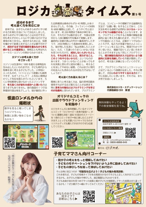 今回は、「成功するまで考え抜く力を育むためには」というテーマでロジカ式代表の関が書き下ろしたコラムや漫画では、超平和主義者のお嬢様ロジマちゃんが活躍⁉