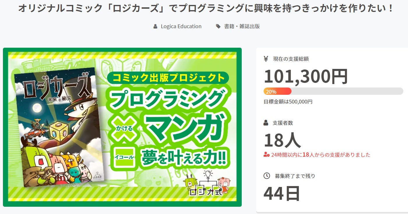 皆様,おはようございます!おかげさまで開始初日にして20%を達成することが出来ました☆皆様からの温かいご支援に心より感謝申し上げます。クラファン期間中もロジカ式では様々なイベントやキャンペーンを企画しておりますので,随時ご報告させて頂きます♪それでは引き続き応援の程,よろしくお願い致します。