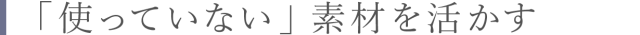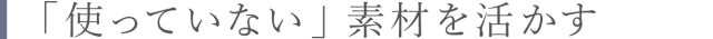 使える状態にあっても、使われる予定のない資材のことを“遊休資材”と呼んでいます。商品として生かされる見込みがほとんどない素材たちがさまざまな場所に、さまざまな理由から眠っていることを、商品企画の仕事を通じてわたしたちは知っています。