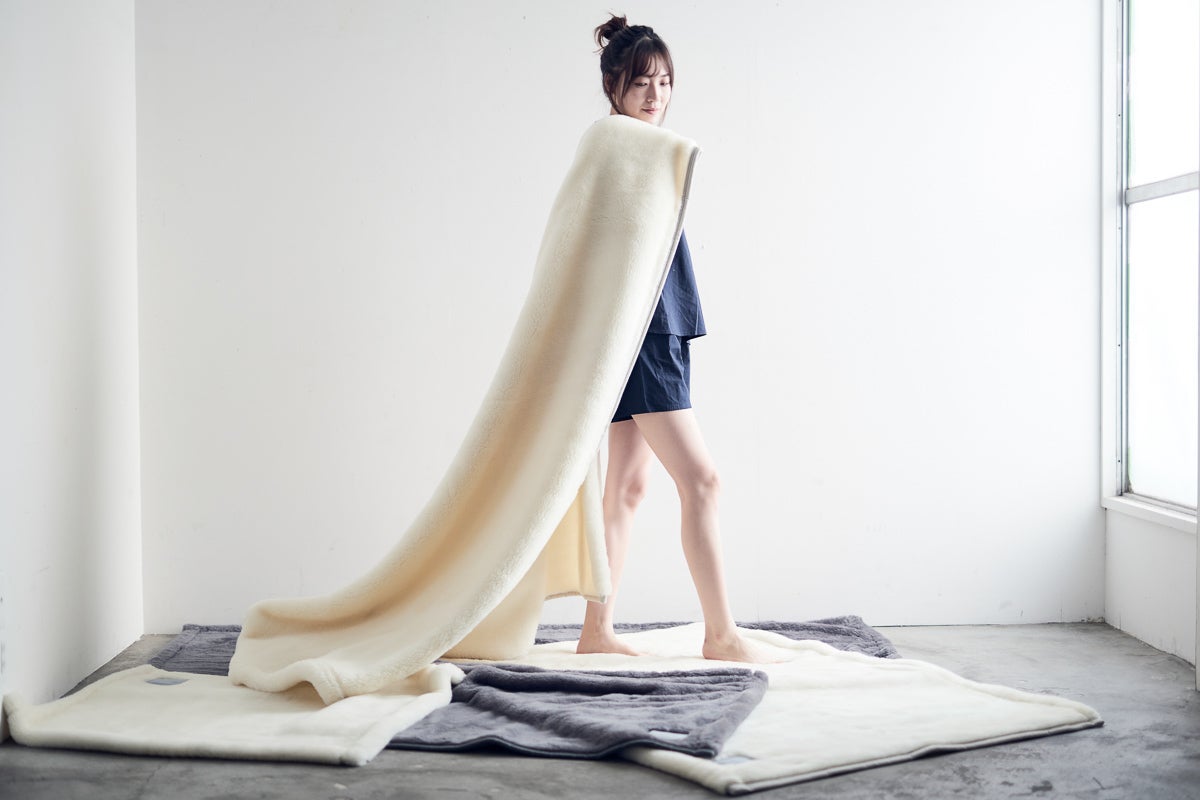 革新的なメリノウールニューマイヤー毛布は温かさと軽量さを追求して現在のバランスになりました。