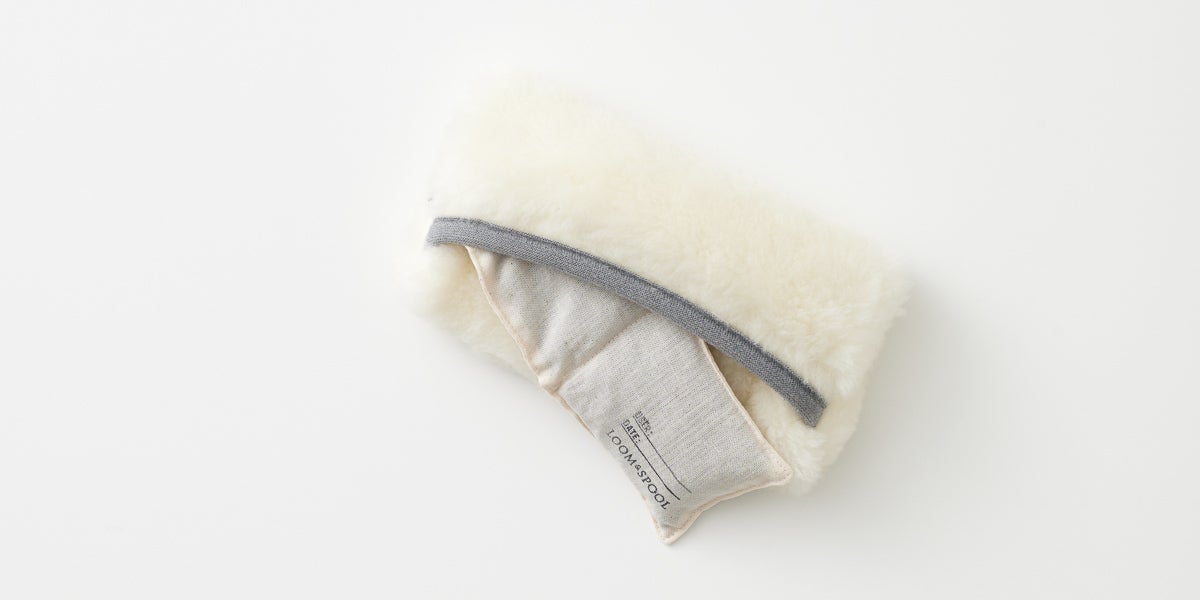 メリノウールは調湿性、保温性にすぐれており、あずきピローのやわらかなあたたかさを何もない状態に比べて長く保ちます。なにより、風合いの柔らかなメリノウールは触っているだけでも安堵感に包まれるふわふわ触感です。
