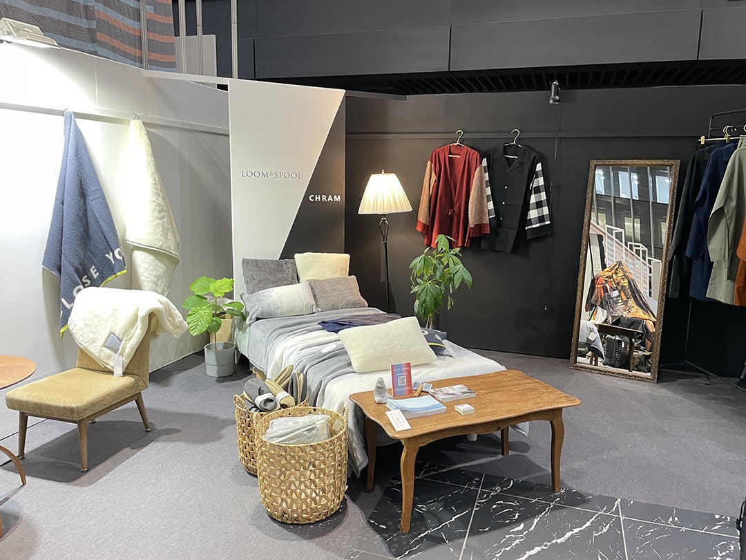 ラウンジウェアブランド「CHRAM」さんにおしゃれな睡眠くくりで一緒に出ませんか?とお誘いしたところ快諾していただけました。いつも毛布だけで世界観を見せているのですが、CHRAMさんと一緒に並ぶことでぐっと寝室、ライフスタイルの想像が広がりました。