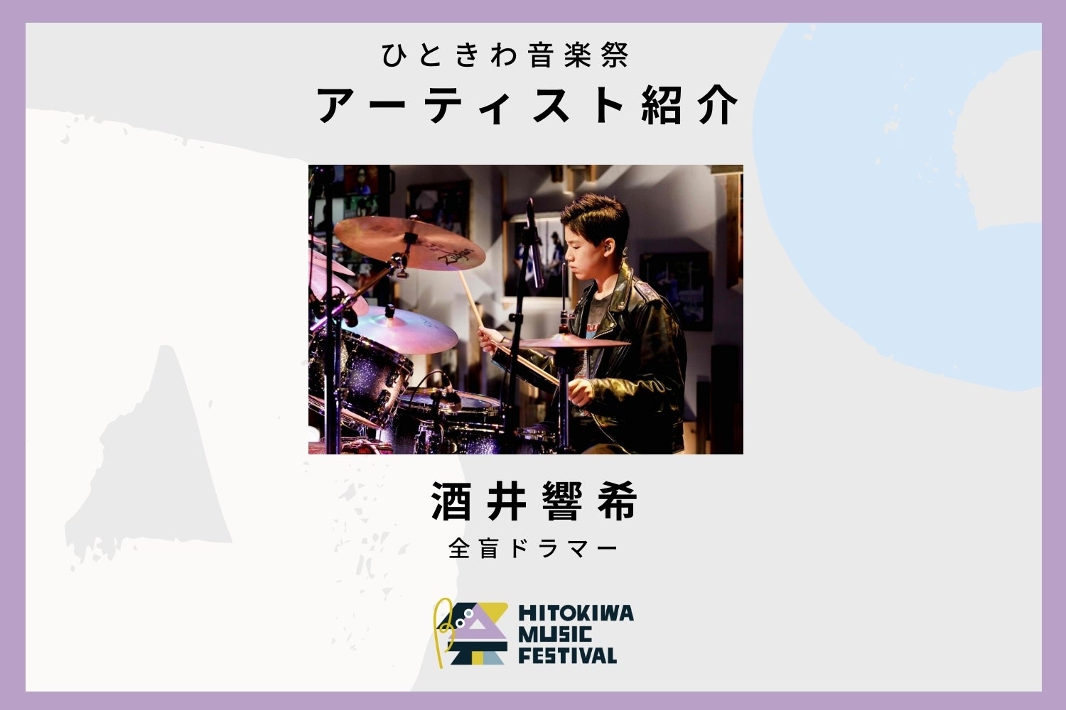 さて、今日はひときわ音楽祭に出演する全盲の高校生ドラマー『酒井響希(さかいひびき)』さんからメッセージが届きましたのでご紹介いたします!!